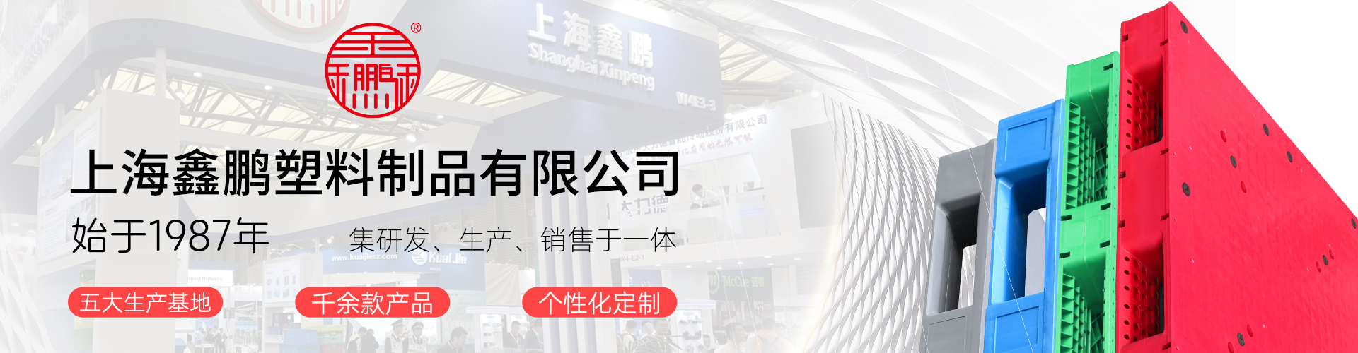 上海鑫鹏塑料创始于1987年,始终专注深根塑料产业链,业务板块包括:塑料原料贸易、塑料制品研发制造(塑料托盘、塑料箱筐、卡板箱、环卫桶等)。现全国有5个生产基地:上海2个、四川1个、江苏2个。